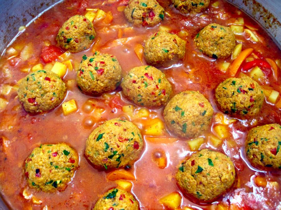 להגשה: בצלחת רחבה של מרק להניח 4 כדורים לאדם עם רוטב וסלט עלים קטן בצד.
