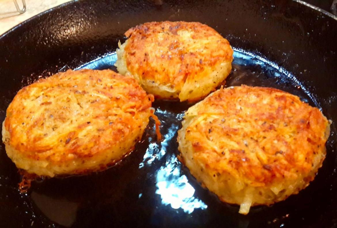 תוך כדי כל שלבי הטיגון, מקפידים שתהיה חמאה מזוקקת (או שמן זית) במחבת ומזלפים גם על פני הלביבות. חלק מהחמאה נספג בתפוחי האדמה ולכן צריך להוסיף מעט במהלך הטיגון.