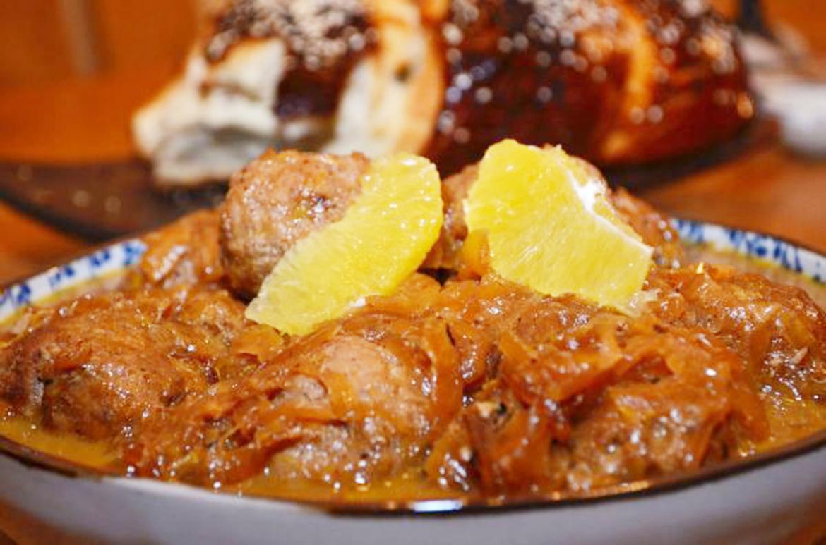 קציצות נפלאות, ברוטב בצל ותפוזים מתקתק.