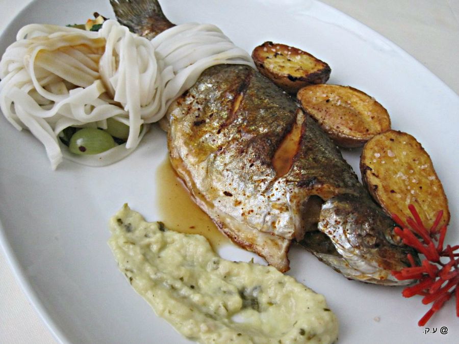 דג פורל שלם, עם סלט ענבים קטן ורוטב לימון נפלא בהגשה לא שגרתית