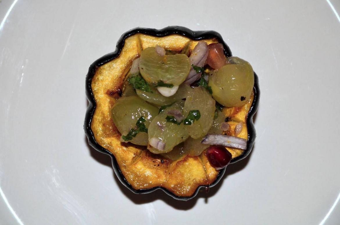 דלעת ערמונים צלויה במיץ תפוזים עם סלט ענבים פיקנטי