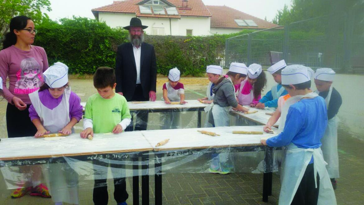 פסח בדלת והרב מנחם לא נח על השמרים ועובר בבתי הספר ומדגים אפיית מצות מסורתית. הנה הוא בבית הספר אבן חן. חג כשר ושמח לכולנו!