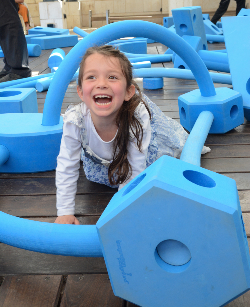 הפנינג מרהיב של משחקי בנייה ברחבת ענק מוצלת ונעימה, ילדים והורים מוזמנים למתחמים שונים של סביבות בנייה צבעוניות ומרתקות. זהו המתחם המרכזי של האירוע, במתחם זה מתקיימות ארבע בניות ענק מחומרים שונים. כל בנייה מזמנת חקירה של חומרים, גודל וחוזק מבנים, מעודדת שיתוף פעולה בין המבקרים לבין עצמם, ויוצרת הבנה אינטואיטיבית של עקרונות בניה בסיסיים. כולם בונים ונהנים. ילדים והורים בונים מבני ענק מחומרים פשוטים וממוחזרים (בקבוקים, מקלות מגנטים, גומיות, צינורות, קוביות ענק ועוד) בעזרת דמיון, יצירה ותכנון, ומשתעשעים כיד הדמיון הטובה עליהם. כל אחד מוסיף את חלקו למבנה, וביחד יוצרים מבנים מרהיבים שמחכים למבקרים הבאים או קורסים....