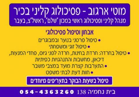 פסיכולוג קליני ראשי בשירות הפסיכולוגי של אוניברסיטת תל אביב , מקבל מטופלים בבית...